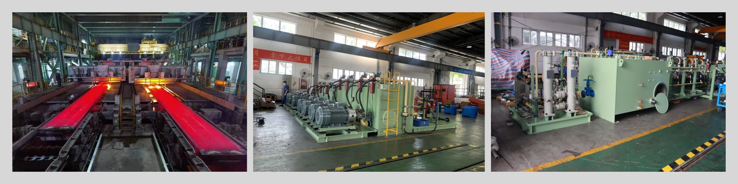 研制生产的冶金设备液压系统,在冶金企业全套生产线上均有应用案例,从选矿、烧结、焦化相关设备,到高炉、转炉、电炉,连铸、连轧等生产线及设备所需的液压系统,包括 COREX 炉液压系统、烧结机液压系统、热风炉(炉顶炉前及槽下送料)液压系统、焦化炉增设炉头烟气液压系统、双高线液压和润滑系统、薄带连铸试验机液压系统、矫直机液压系统、3800mm中厚板热轧机液压系统、合金钢、优质钢棒材轧机液压系统、铝棒连铸机倾倒炉液压系统、ERW套管热处理线液压系统、型钢生产线液压系统、飞剪液压系统、彩涂液压系统等等,在宝钢及宝钢湛江、武钢、鞍钢、韶钢、安阳钢铁、烟宝、珠海粤裕丰等国内主要钢企及马来西亚金狮集团等国外用户均有应用,产品满足治金行业节能降耗、绿色低碳的发展要求。